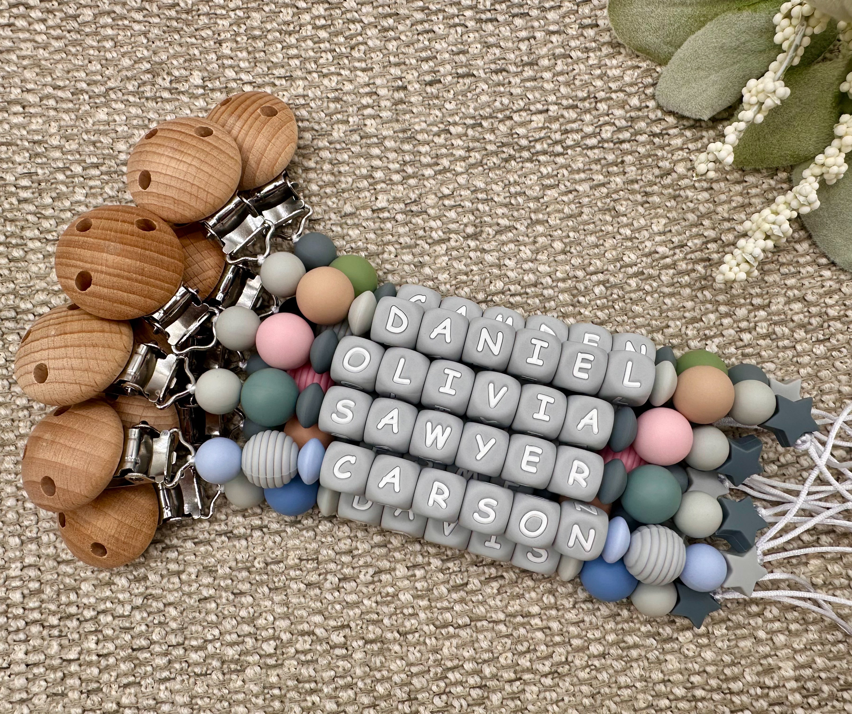 Personalized Pacifier Clips, Blue Collection, Elliot Model